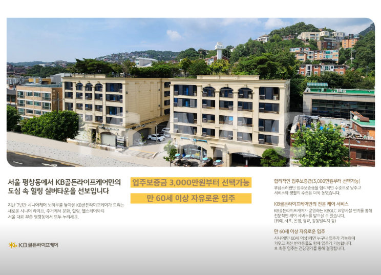 | KB 평창 카운티 | 종로구 평창동 | 3천만~3.3억 원 | 약 250~400만 원 | 후기 고령자(75세+) 특화, 유연한 보증금제 |