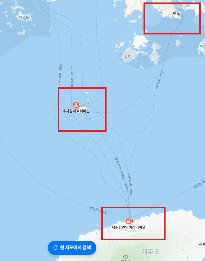 - 완도 ↔ 제주: 추자도를 경유하여 약 5시간 소요